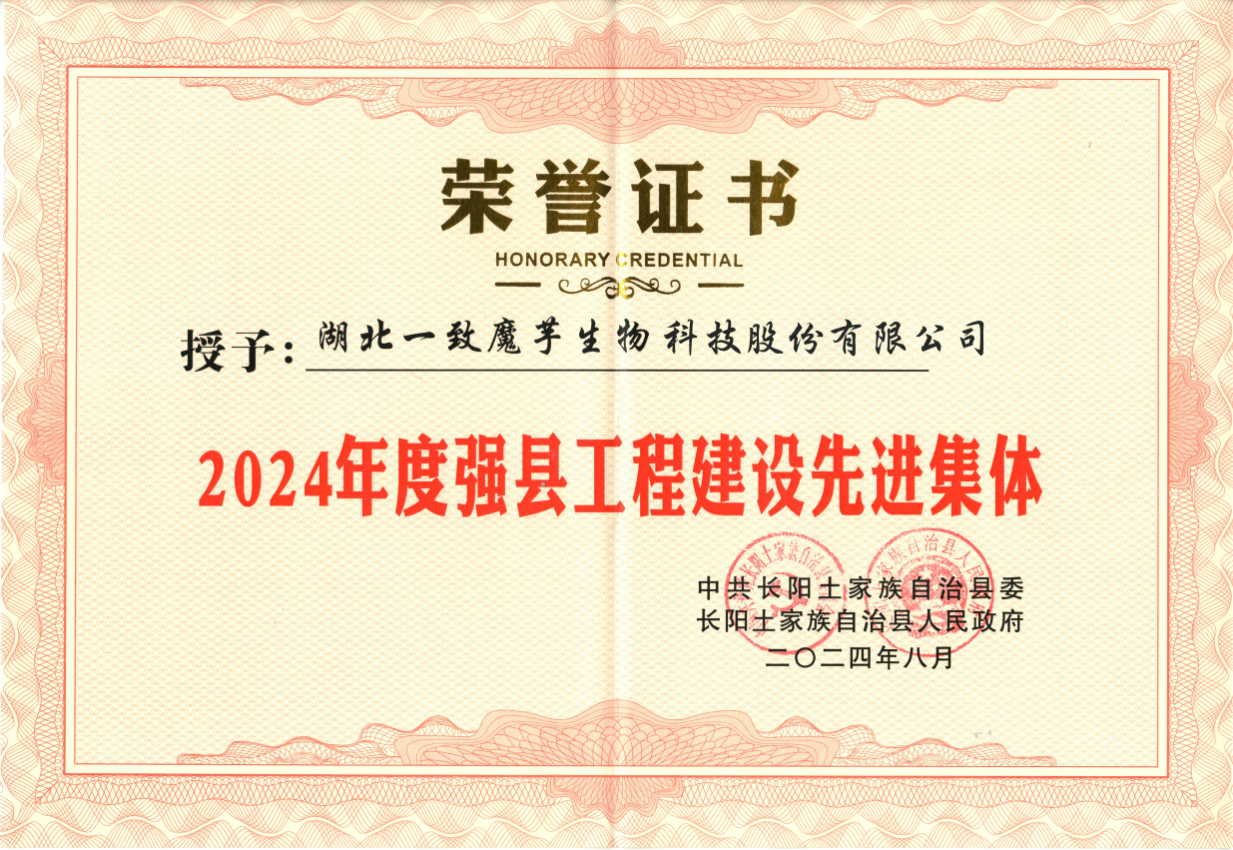 在8月5日上午舉行的長陽縣全縣強縣工程建設及優(yōu)化營商環(huán)境大會上,一致魔芋獲得“長陽縣2024年度強縣工...